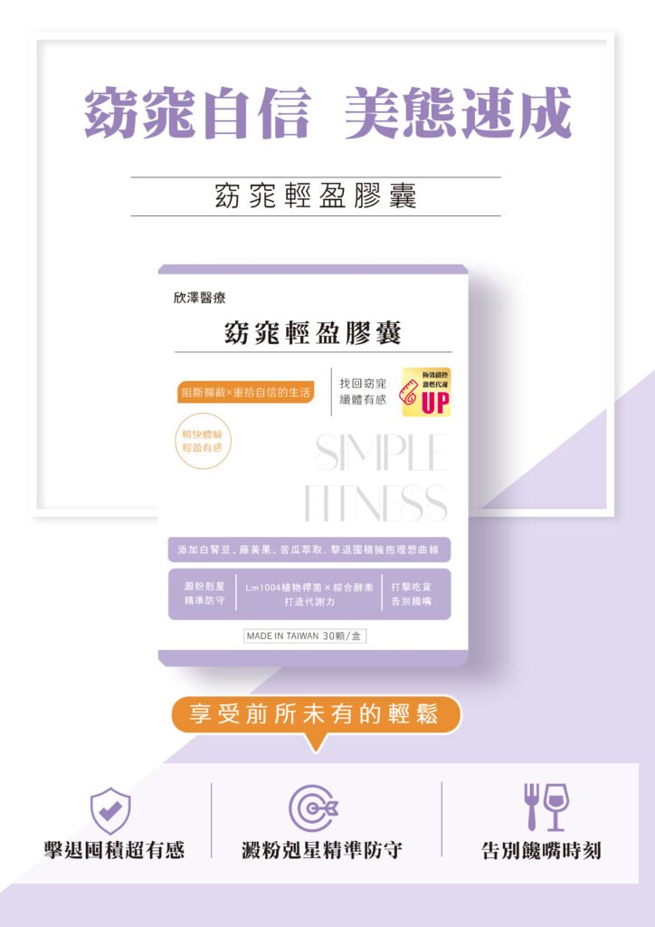 「欣澤醫療-窈窕輕盈膠囊」結合白腎豆、益生菌、酵素與多種植物萃取成分,
